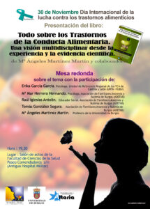 Esperamos veros el próximo lunes 30 de noviembre (día internacional de la lucha contra los trastornos alimentarios) en la presentación del libro «Todo sobre los